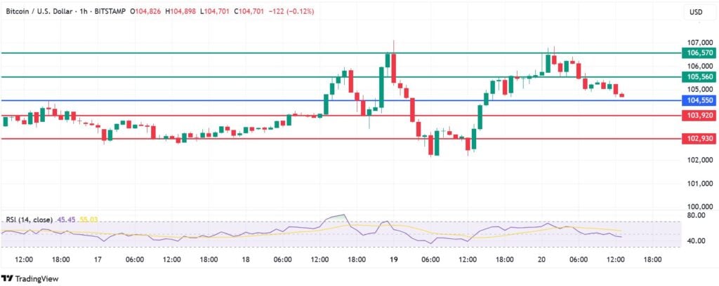 Alternatively, going below $104,500 will trigger a downward momentum. In that case, BTC price will likely find the first support at $103,920. Breaking below that level will invalidate the upside momentum Furthermore, a stronger momentum could extend losses to test $102,930.