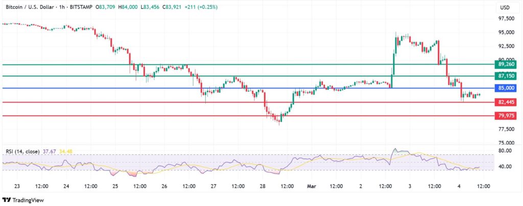 The momentum on Bitcoin price signals control by the sellers as per the RSI indicator. If resistance persists at $85,000, the first support is likely to come at $82,445. Breaking below that level will signal a stronger downward momentum which could take BTC price lower to test $79,975.