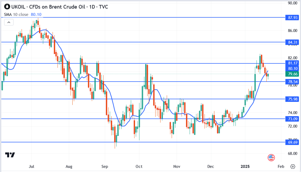 Brent crude oil is in a fragile state as Trump’s energy policy transforms supply dynamics. As the market processes the effects, key technical levels such as $81.17 and $78.54 will be crucial in guiding short-term movement. Investors ought to remain prudent in light of increasing supply risks and changing global demand patterns.
