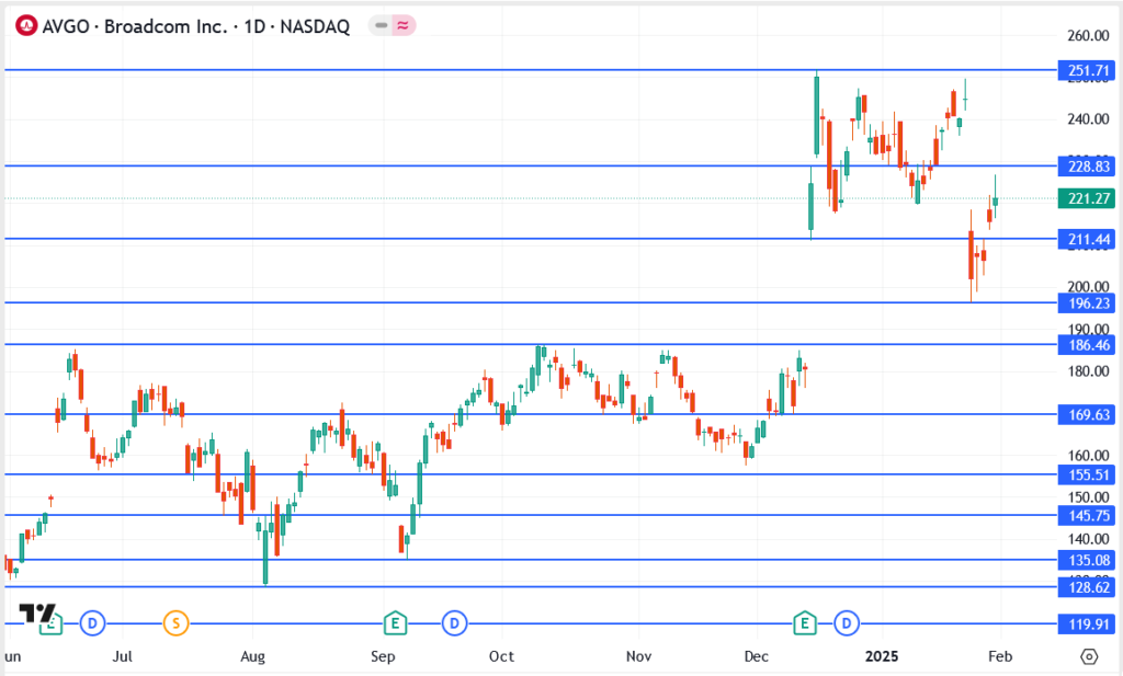 A combination of solid fundamentals and wider market trends is influencing Broadcom’s recent price movements. The company continues to be a major beneficiary of the AI and cloud computing surge, as the need for its semiconductor solutions keeps increasing.