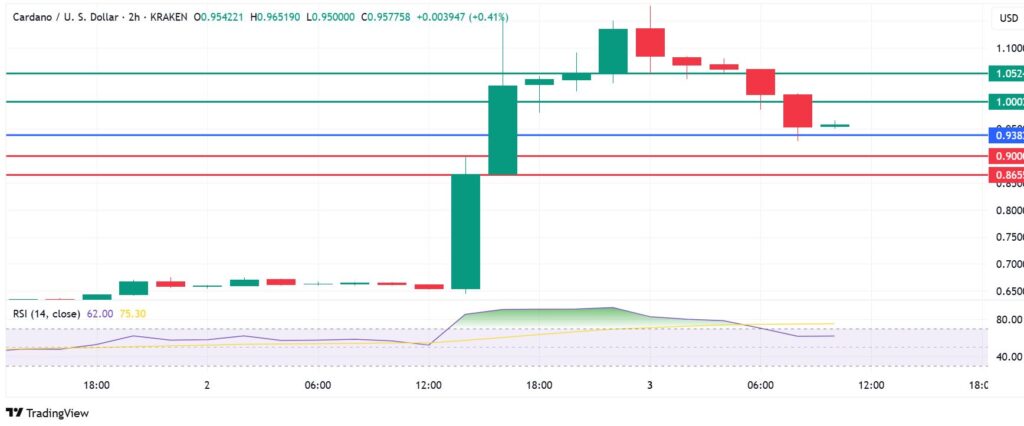 The momentum on Cardano price favours the upside if action stays above $0.93, with immediate resistance likely to be at $1.00. Breaking above that level will strengthen the upward momentum and potentially test the second barrier at $1.052.