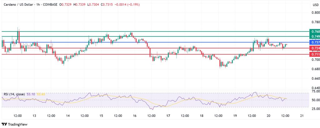 The momentum on Cardano price signals the likely continuation of the downside below the $0.737 pivot. The ADAUSD pair will likely meet its initial support at $0.724. However, a stronger downward momentum will break below that level and could send the action lower to test the second support at $0.711.