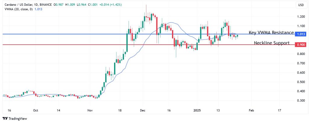 However, Cardano bulls will need to breach the $1.01 resistance, which corresponds to the coin’s Volume Weighted Moving Average (VWMA) on the daily chart, and flip it into a support level. However, the bullish outlook could be invalidated if Cardano price breaks below the $0.900, at the neckline of its double-top pattern.