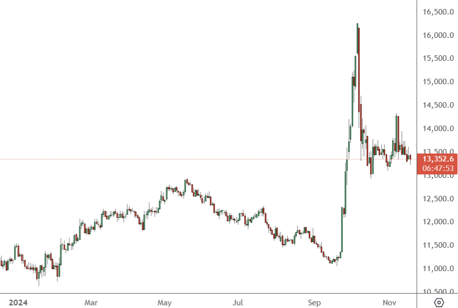 The index of the top 50 Chinese shares has support around the 13,000 level and that will be key to keeping the rally alive into year-end.