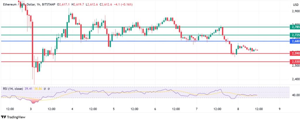 Alternatively, breaking above $2,680 will shift the momentum to the upside. That could see the establishment of the first resistance at $2,725. The downside narrative will be invalid if the ETHUSD pair breaks below that level. Furthermore, an extended control by the buyers could test the second resistance at $2,785.