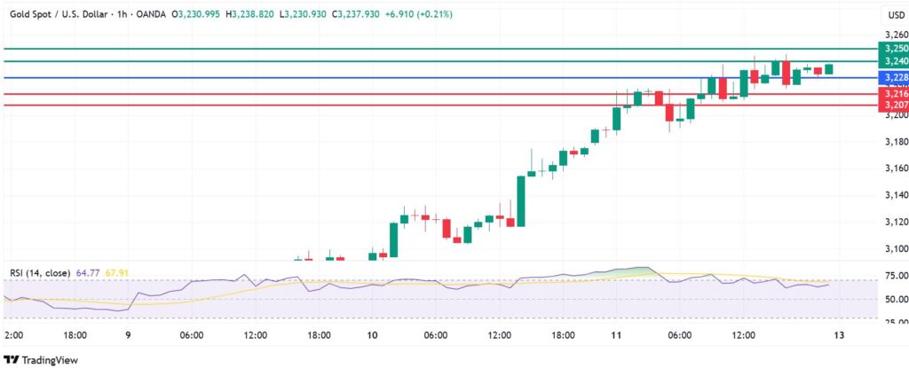 Gold price pivots at $3,228 and the upside will prevail if action stays above that level. The first resistance will likely be at $3,240. Breaking above that level will signal an extended control by buyers, and the resulting momentum could push the XAUUSD pair higher to test $3,250.