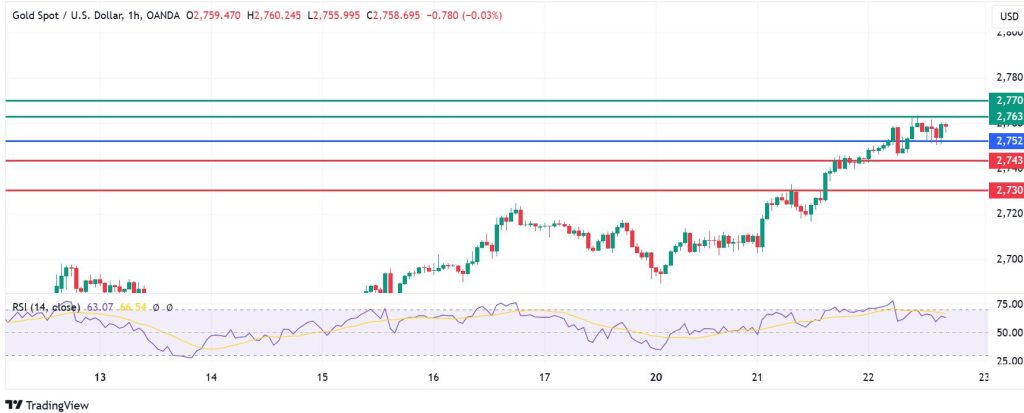 Gold price pivots at $2,752 and action above that level will favour the buyers to be in control. That will likely see the commodity’s price move to the first resistance at $2,763. However, if the buyers extend their control, it could enable a move past that barrier and potentially push it to test $2,770.