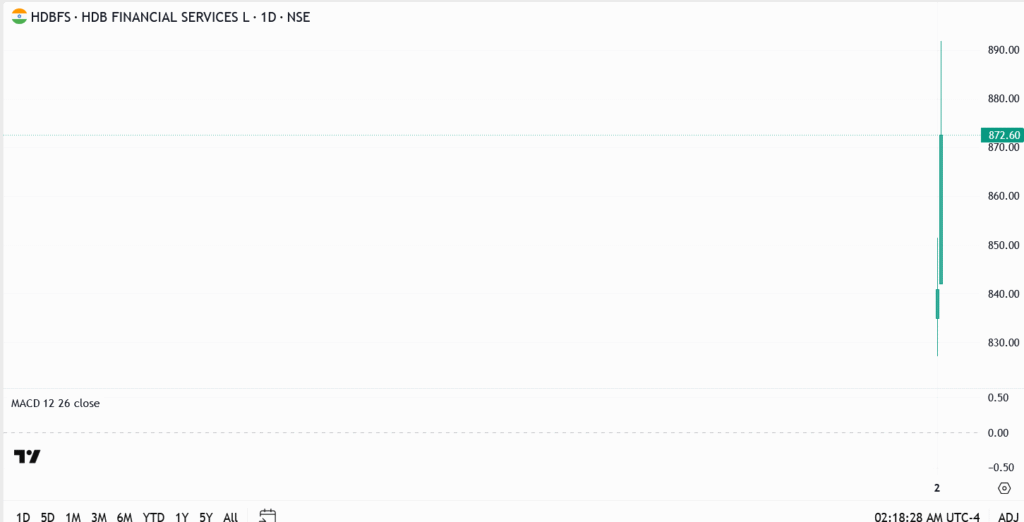 HDB Financial Services isn’t done rallying. Two days after its blockbuster debut, the stock tacked on more gains in early Thursday trade, hitting ₹891 on the BSE, up 6% intraday. That pushes its post-IPO return north of 20% from the issue price of ₹740.