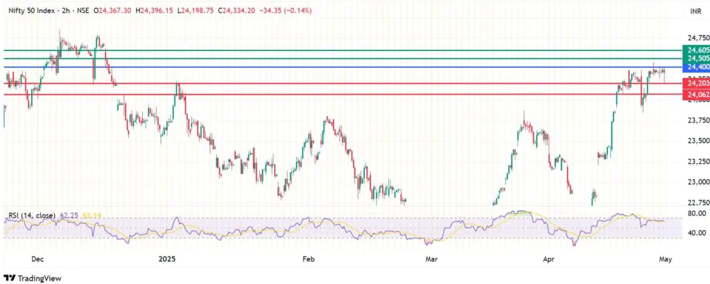 Conversely, breaking above 24,420 will shift the momentum to the upside. In that case, the first resistance is likely to come at 24,450. The downside thesis will be invalid if the Index breaks above that level, and such momentum could drive gains further up to test 24,480 points.