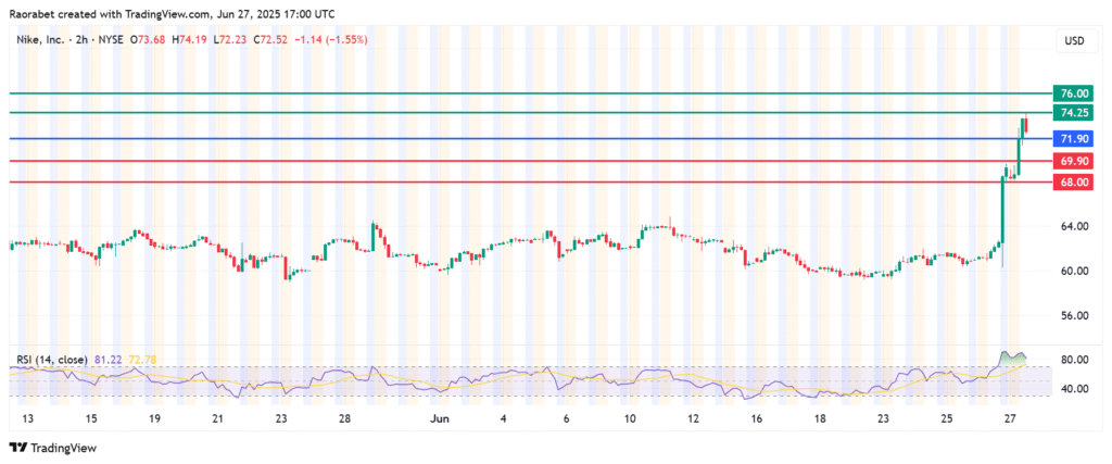 Alternatively, going below $71.90 will invite the sellers to take control. That will likely see primary support level established at $69.90. Breaking below that level will invalidate the upside narrative. In addition, a stronger momentum could push the stock lower to test $68.00.