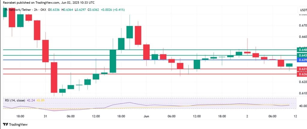 Pi Network coin momentum calls for a continuation of the downward momentum below $0.639. The coin will likely find the first support at $0.631. However, an extended control by the sellers will break below that level and potentially send the price lower to test $0.626.