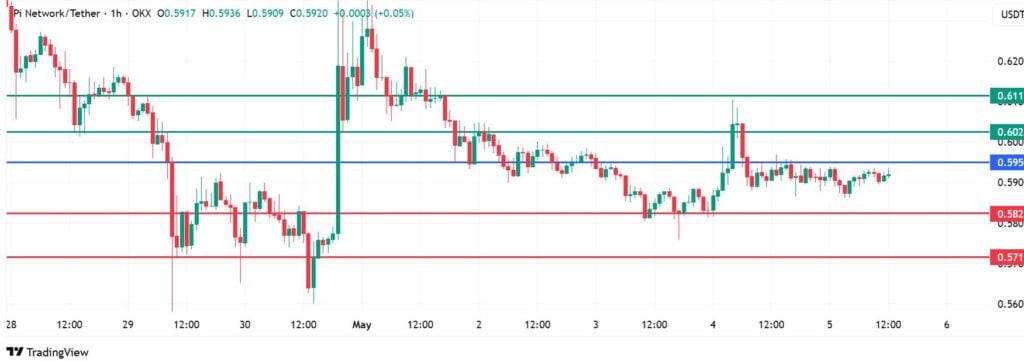 Pi Network Coin price pivots at $0.595 and resistance at that level favours the sellers to be in control. The coin will likely meet initial support at $0.582. If the sellers extend their control, the price could go lower and test $0.571.