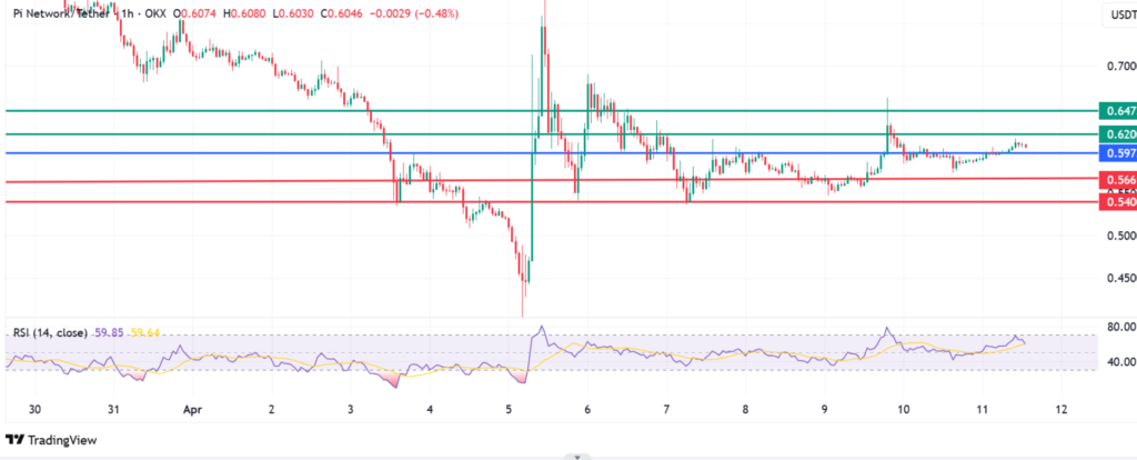 The momentum on Pi coin price favours the buyers to be in control above $0.597. The upward momentum will likely meet initial resistance at $0.620. An extended control by the buyers will break above that level and the resulting momentum could test $0.647.