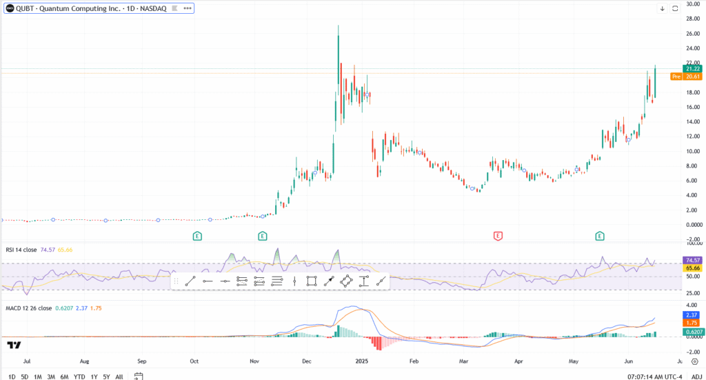 - Speculative appetite returns: With the Nasdaq rebounding, lower-priced high-beta stocks are back in favour. QUBT is trading around $21.22, and its low float means volatility remains high.