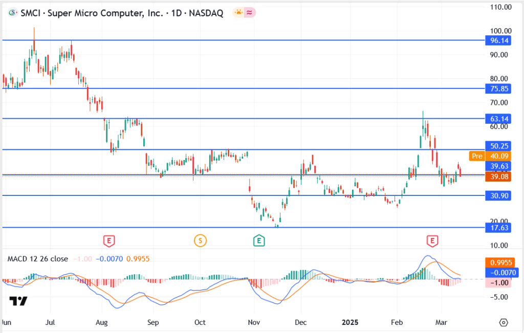 If SMCI stays above $39, a rebound toward $50-$63 is possible. Falling below $30 could spark another major sell-off.
