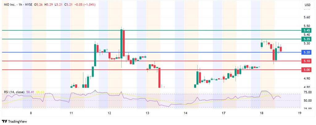 Resistance: The first barrier for Nio will likely be at $5.35. A stronger upward momentum will break above that level and target the next resistance at $5.45.