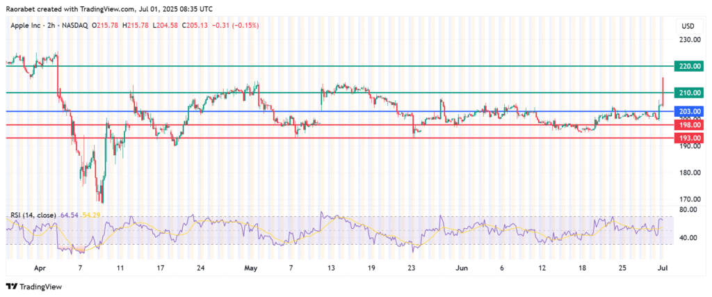 Apple stock price rose by more than 2% on Monday and has gained 1.27% in the last five sessions. The iPhone maker has struggled to keep up with its tech peers in the AI race and investors are concerned that this factor could weigh it down in the medium and long term. Nonetheless, improving iPhone sales has strengthened the outlook.