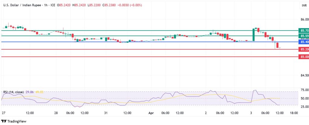 The Indian rupee strengthened against the US dollar on Thursday as the sour trade tariff sentiment got a stronger tempo. The USDINR traded at 85.37, down by 0.06% at the time of writing, hitting the lowest level in fourteen weeks. The decline is attributed to the latest US tariff announcements, which triggered widespread selloffs across financial markets.